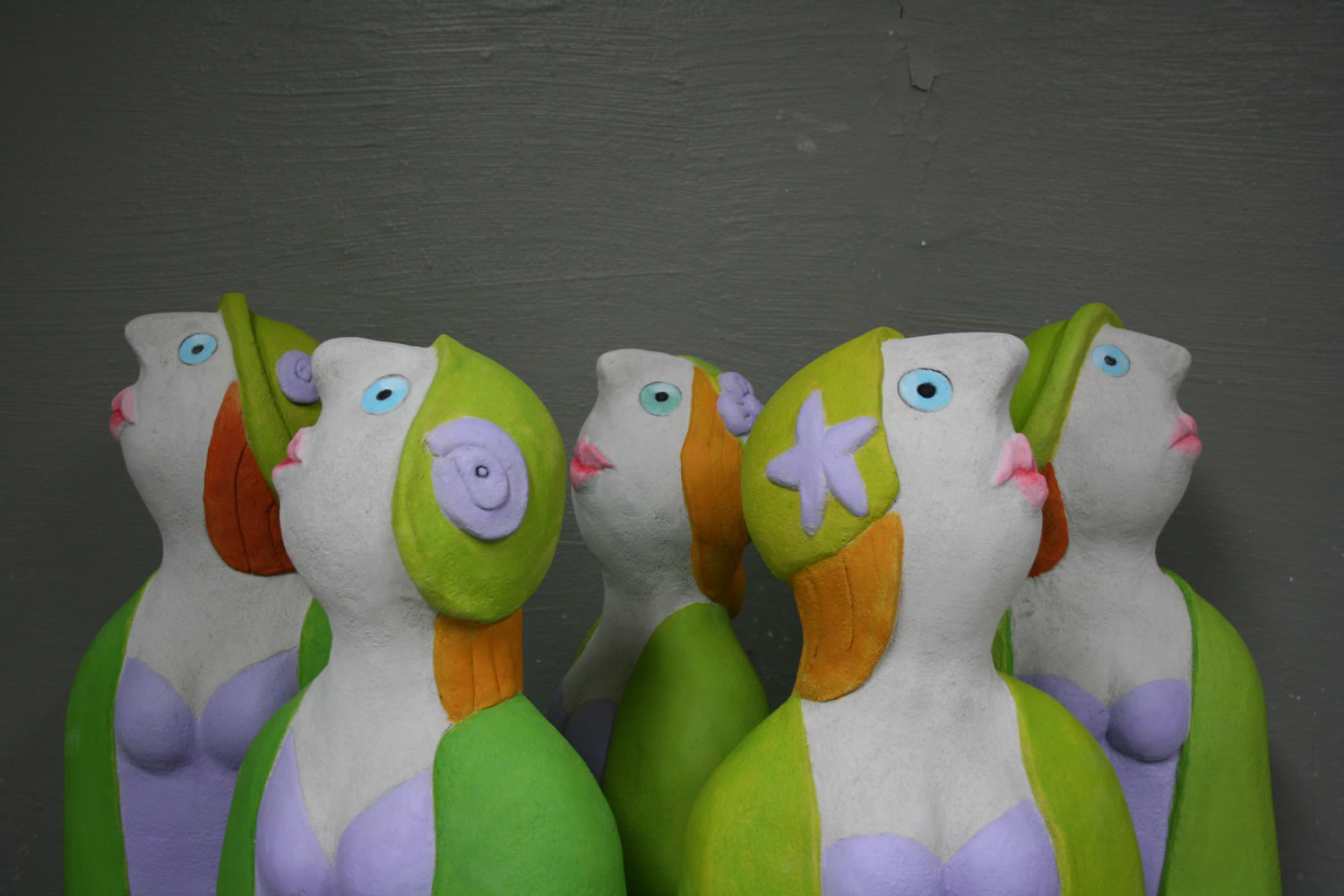 Wiedererkennungswert. Die fünf Damen dieser Ausstellung, grün
