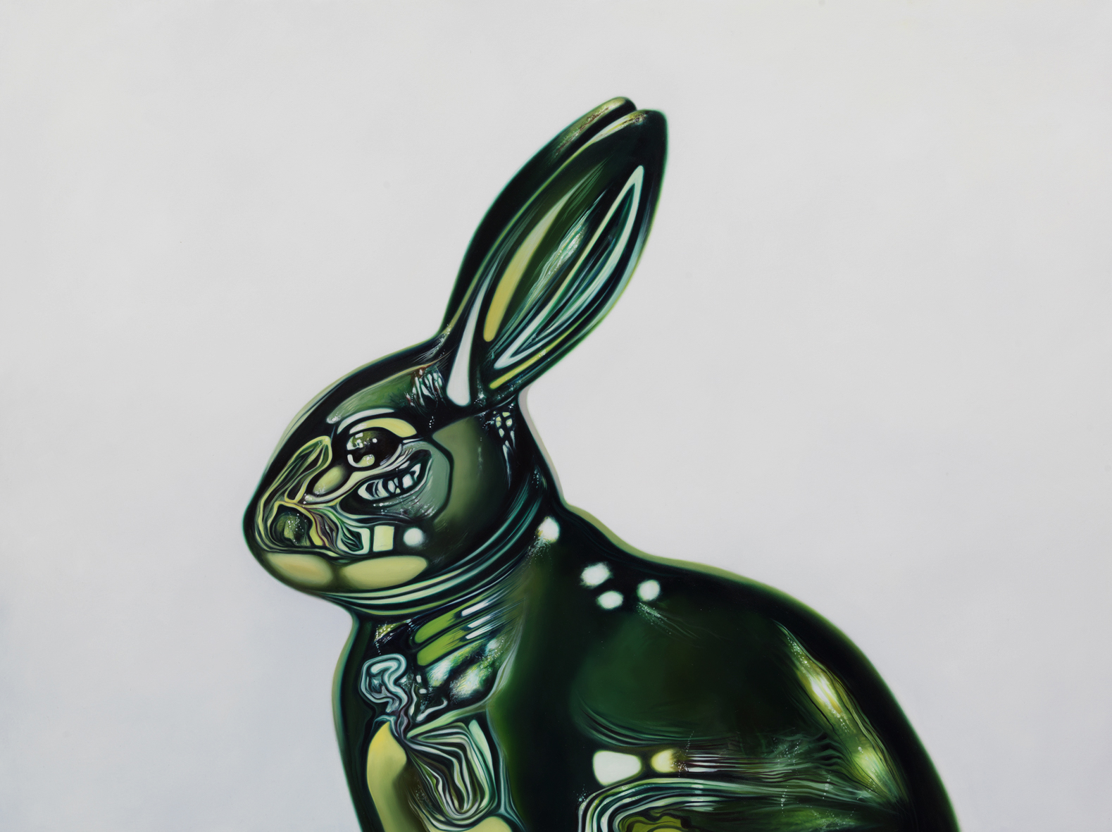 Hasen auf illustriertem Grün und schalenartig gebrannter Ton verwandelt